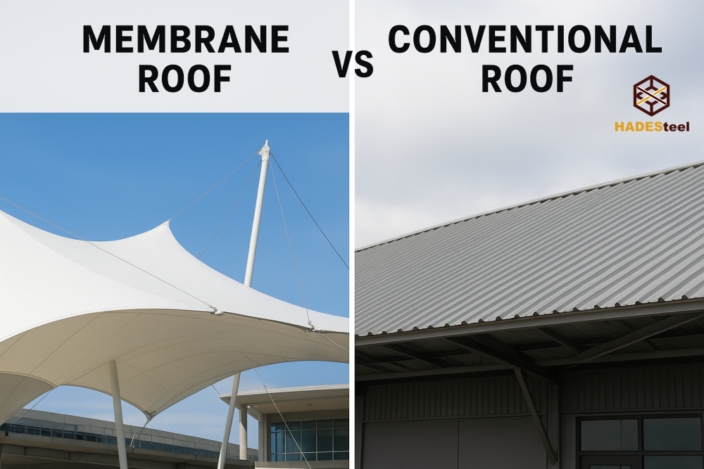 - Atap membran unggul secara estetika dan pencahayaan alami, namun memerlukan rekayasa struktur dan pengujian ketat.